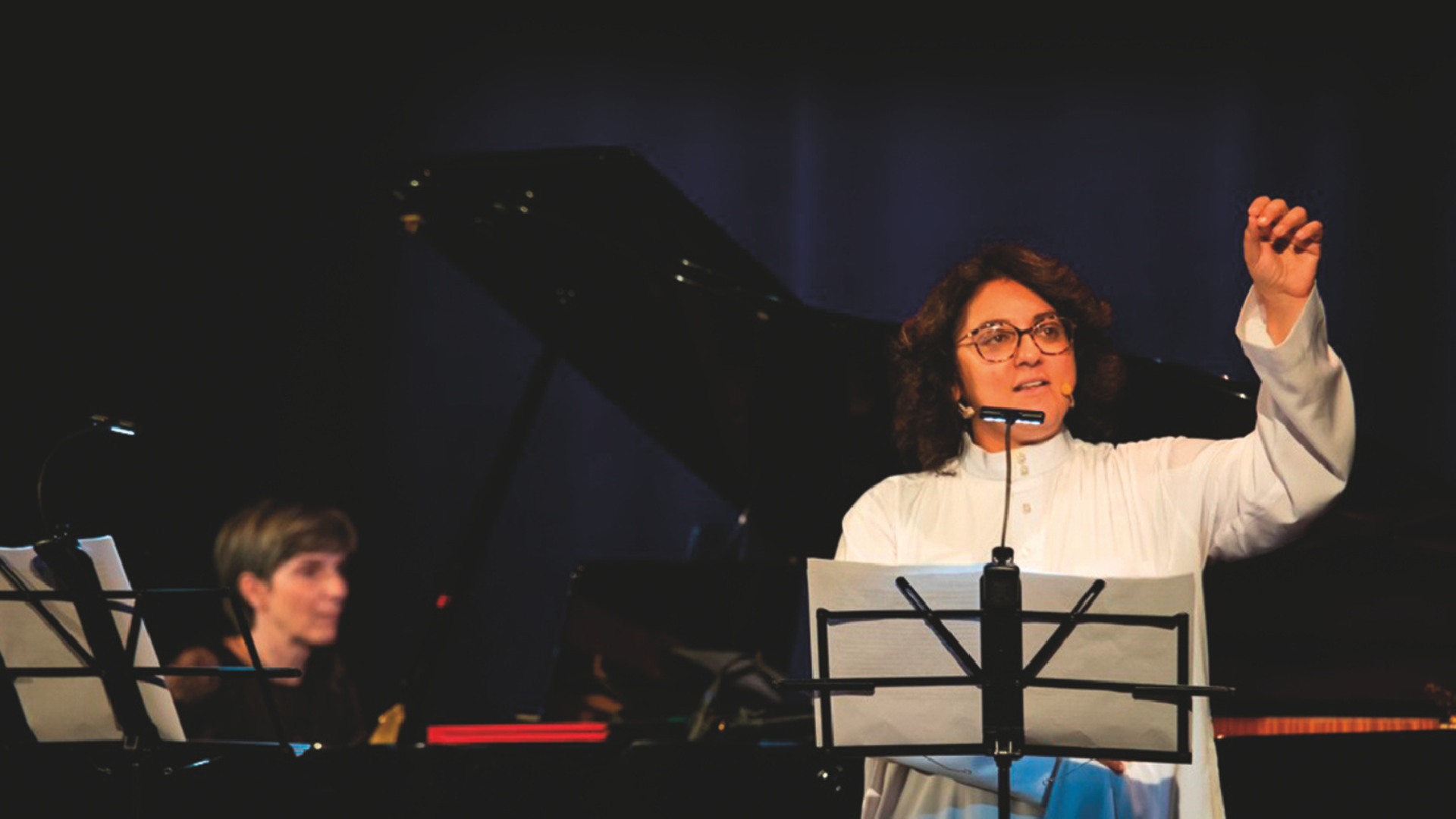 Con il pianoforte e la voce recitante che interagiscono nell’azione scenica senza soluzione di continuità, nell’avvicendarsi dei quadri e dei personaggi, lo spettacolo si snoda come un racconto in musica che apre a momenti di coinvolgente profondità emotiva, con le artiste sul palco intente a dare voce, nel necessario connubio di bellezza artistica e verità, ad un irrinunciabile messaggio di speranza.