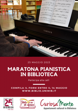 Partecipa alla maratona musicaleNel silenzio c’è musica”, il Silent Concert organizzato dalla Biblioteca di Ateneo per coinvolgere i pianisti amatoriali della comunità accademica e del territorio.